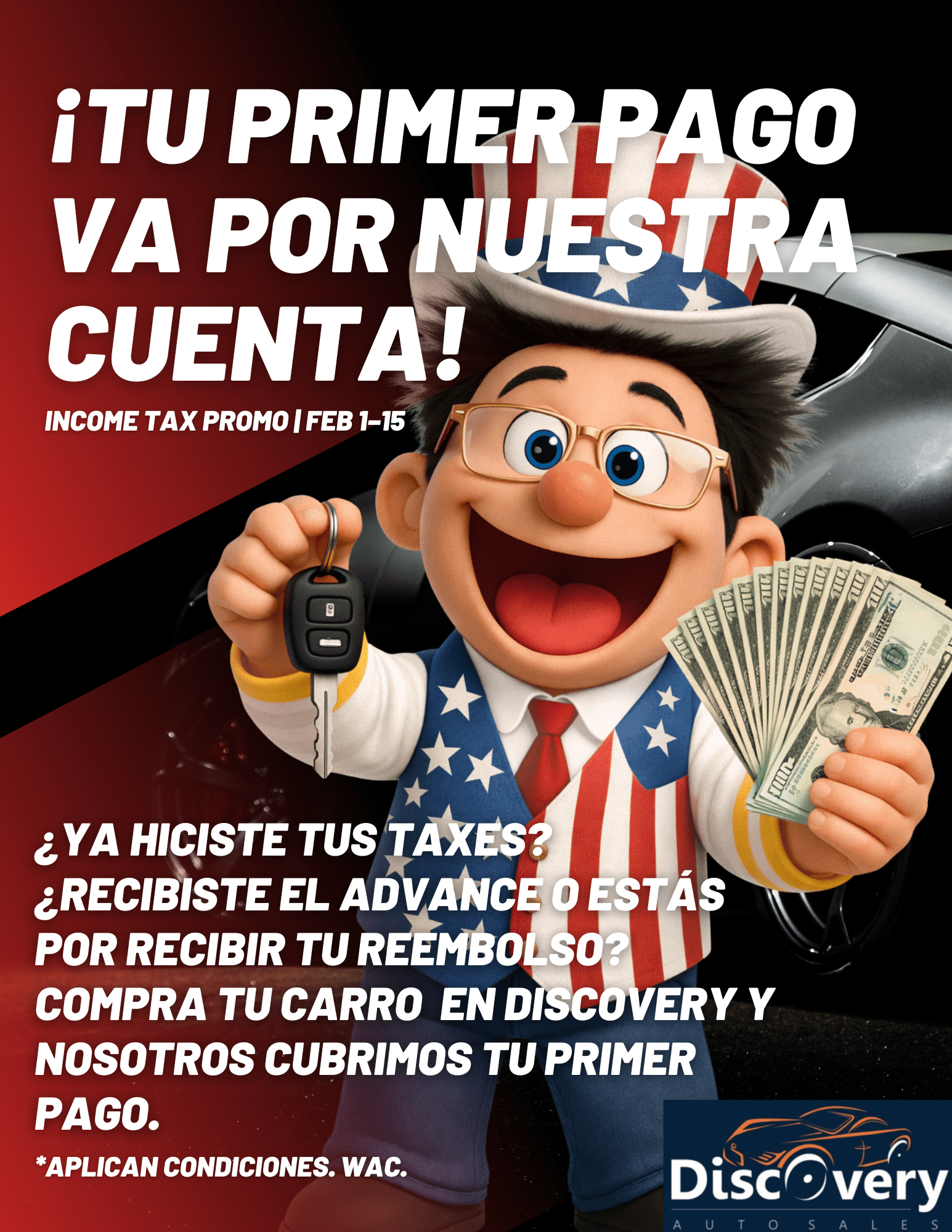 Ven a Discovery Auto Sales, compra tu carro y nosotros cubrimos el primer pago del carro que soñaste!